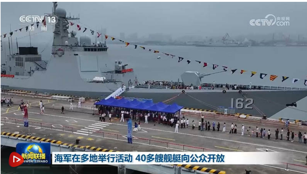 央视网消息(新闻联播):4月23日,海军在22个城市同步举行舰艇开放活动,40多艘现役舰艇与公众见面,多型舰艇为首次面向公众开放,舰艇数量、型号均为历年来海军舰艇开放活动之最。