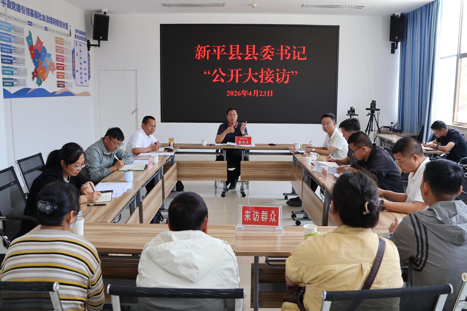 4月23日,县委书记雷双菠到县社会治安综合治理中心接访室公开接待来访群众,与来访群众面对面交流、零距离沟通,认真倾听群众心声、细致了解群众诉求,现场会商研判信访问题、研究解决方案,精准回应群众急难愁盼,切实把群众合理诉求落到实处。