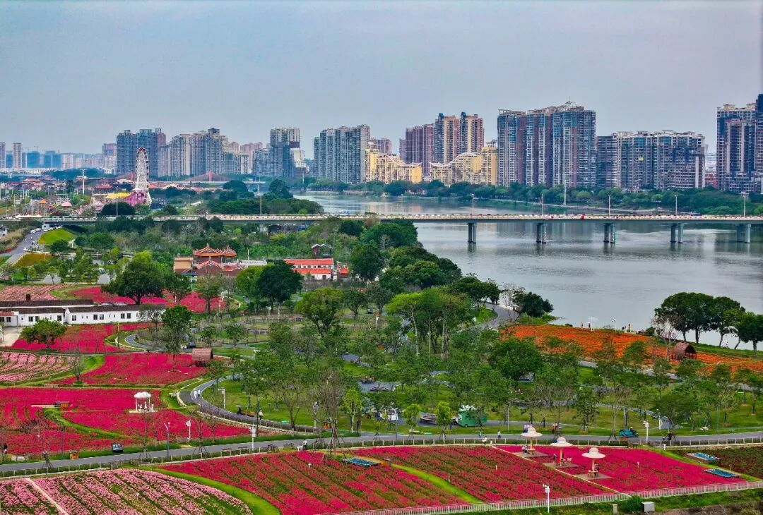 福建漳州市将生态修复与城市更新深度融合,在九龙江西溪南岸分批推进龙江岁月城市更新项目。这是4月11日拍摄的漳州龙江岁月景区及周边城市景观。新华社记者 姜克红/摄