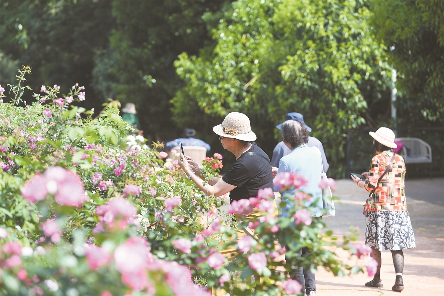 站在扶荔宫室外展区蔷薇观赏区,放眼望去,粉的、白的、黄的、紫的蔷薇竞相绽放,游客穿梭于花海中,不时举起相机、手机定格美丽瞬间。昆明植物园工作人员介绍,室外展区的蔷薇色彩丰富、花型多样、层次感极强。