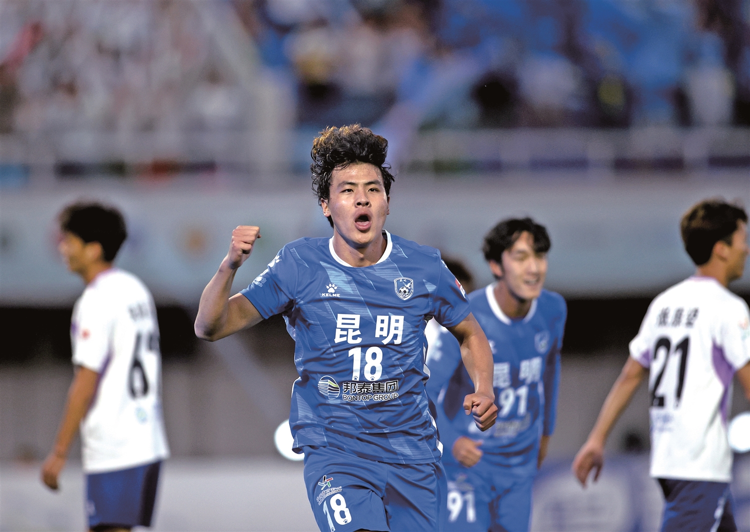 第23分钟,昆明队再次利用角球机会,在禁区内头球接力,邓迪梅开二度,昆明队3比0领先。