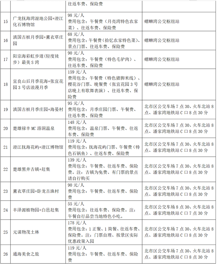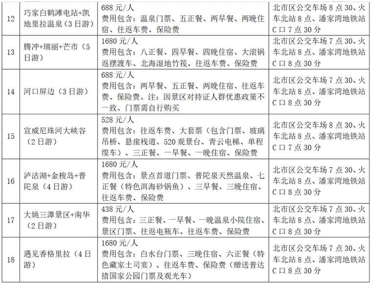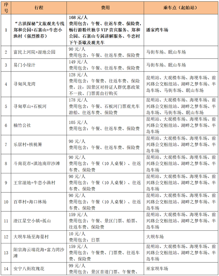 据了解,此次推出的45条线路行程,包含26条昆明周边一日游线路、1条昆明周边多日游线路,以及18条云南省内多日游线路,涵盖古滇探秘、篝火晚会、温泉酒店等特色项目。线路详情如下: