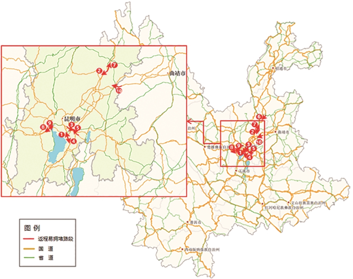 全省高速公路返程易拥堵缓行路段主要分布在昆明周边