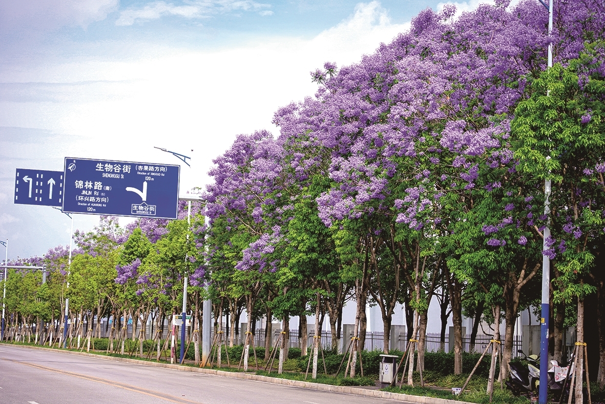 每年春夏之交,呈贡蓝花楹次第绽放。
