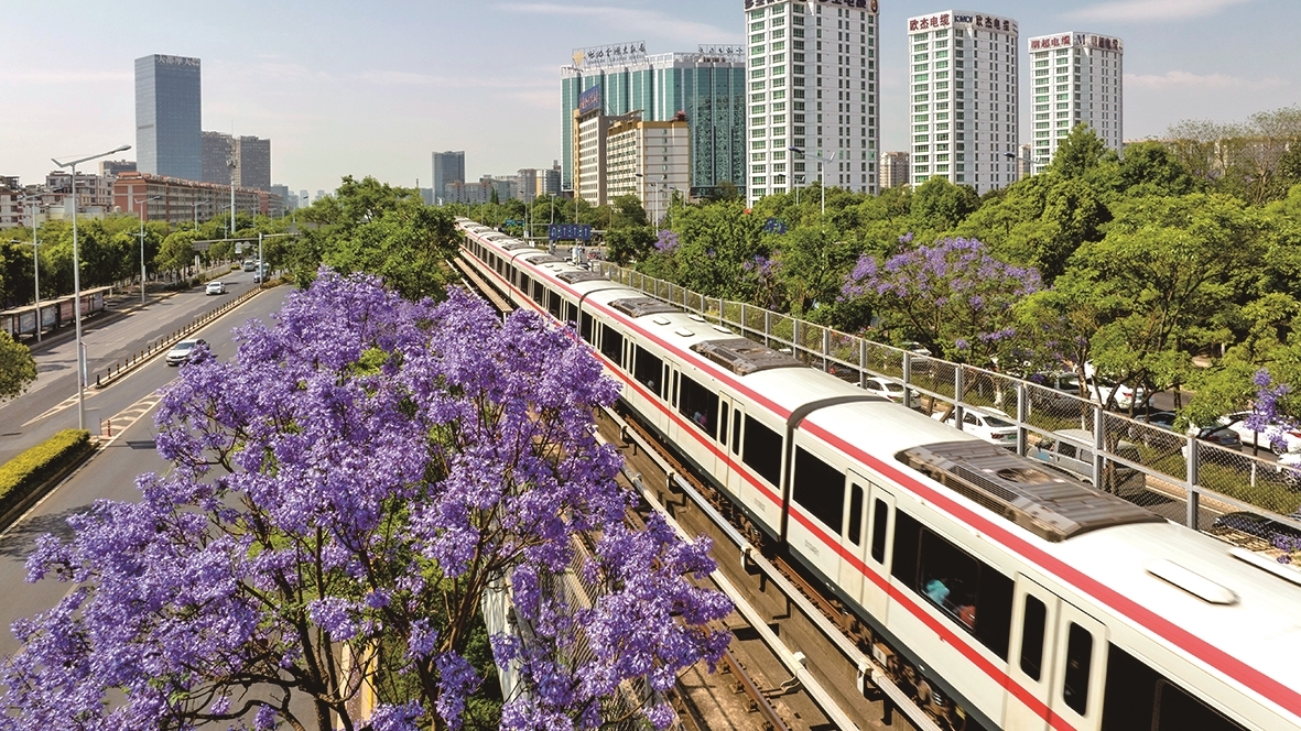 彩云北路:地铁穿过紫色花廊,定格“开往春天的地铁”唯美瞬间。