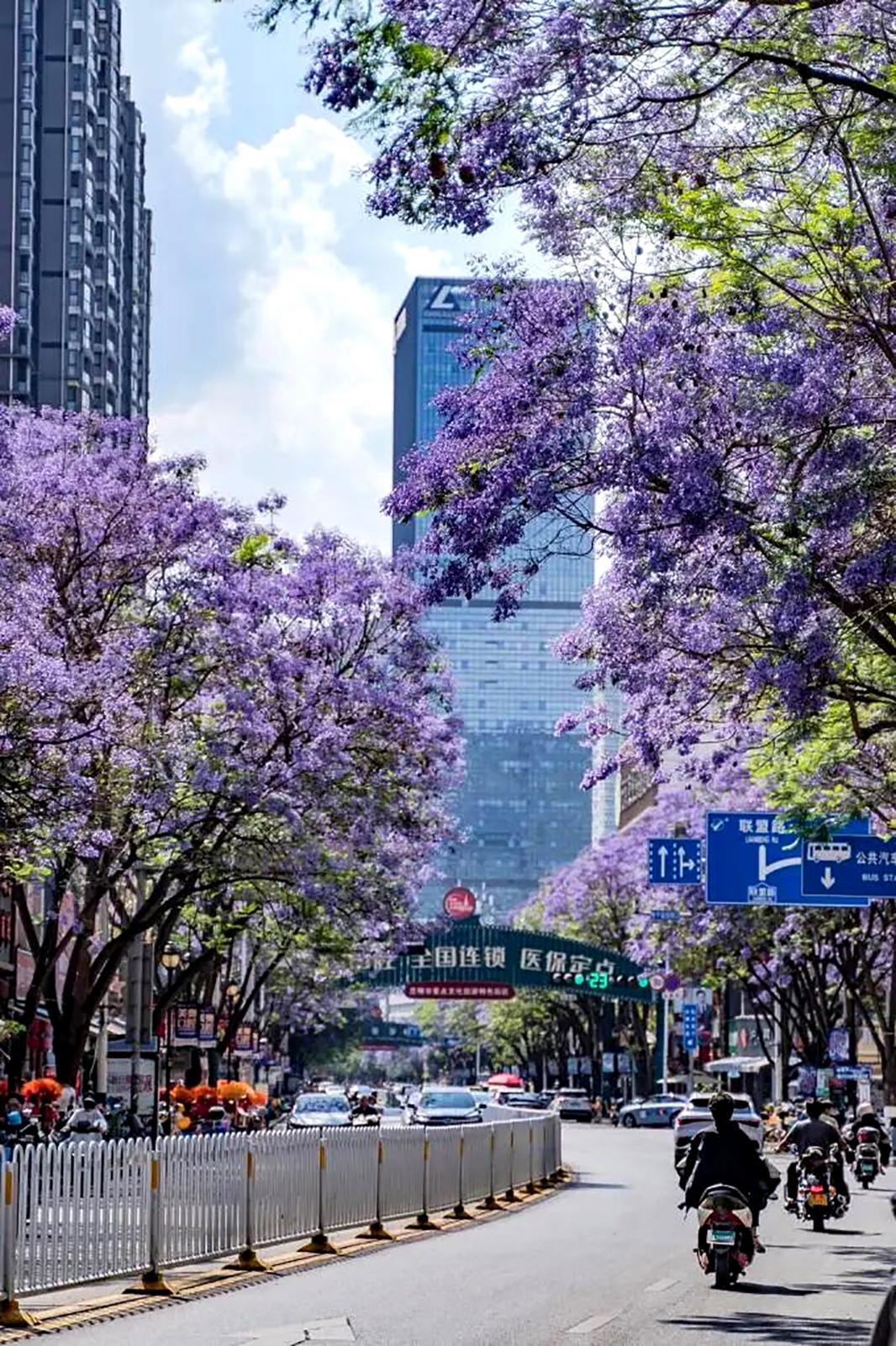 昆明蓝花楹进入最佳观赏期,全城都被浪漫紫色包围