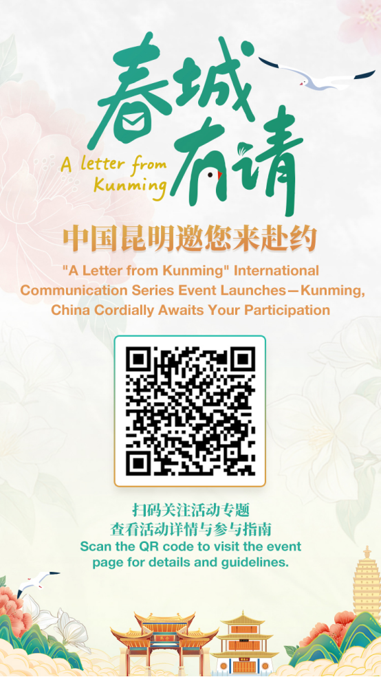 欢迎各位友人通过微博、抖音、Facebook、X、TikTok、YouTube等社交平台,分享您与昆明春节的精彩瞬间,带上话题#ALetterfromKunming春城有请,一起开启这场难忘的春城之约!