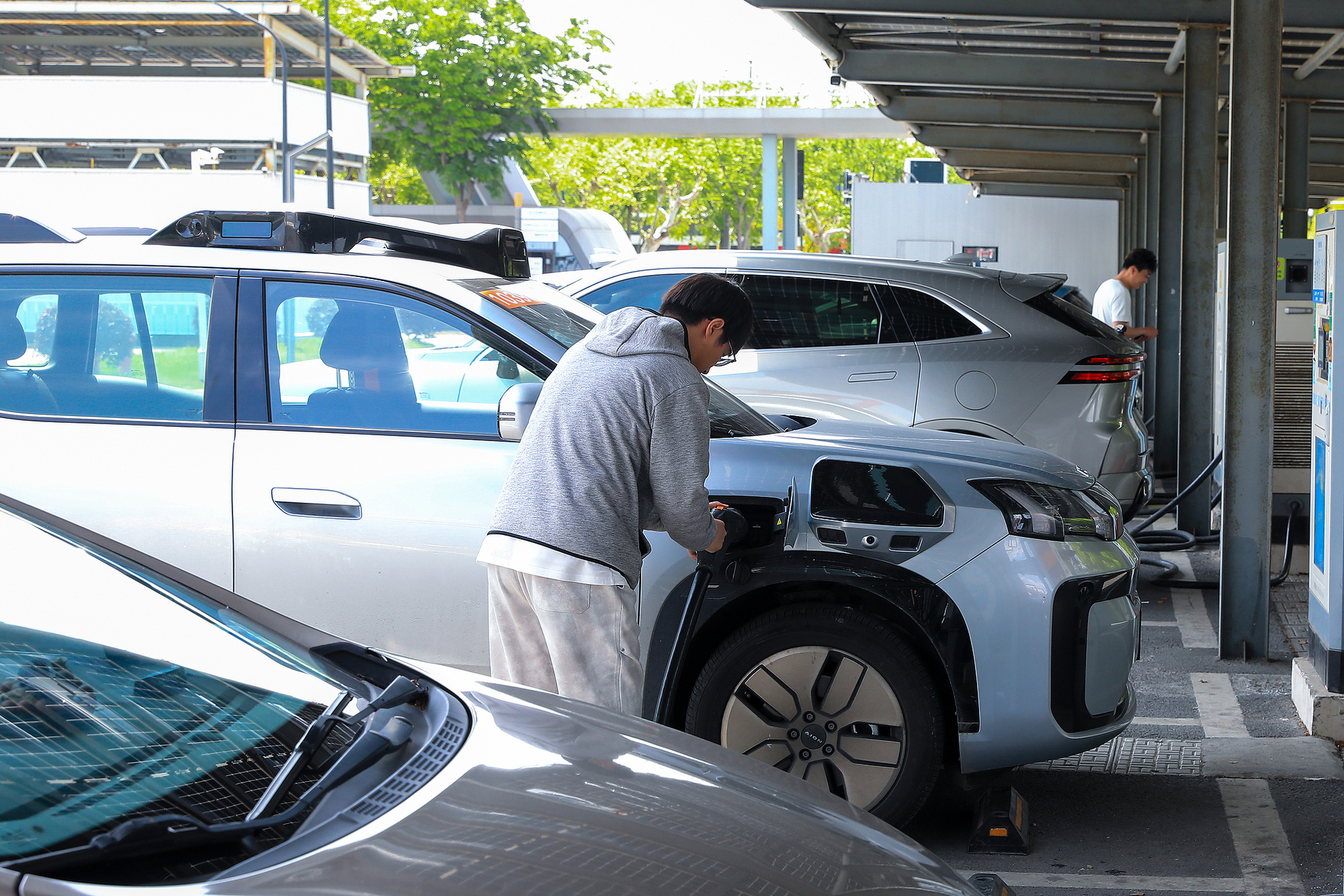 2026年4月25日,上海,市民给新能源汽车充电