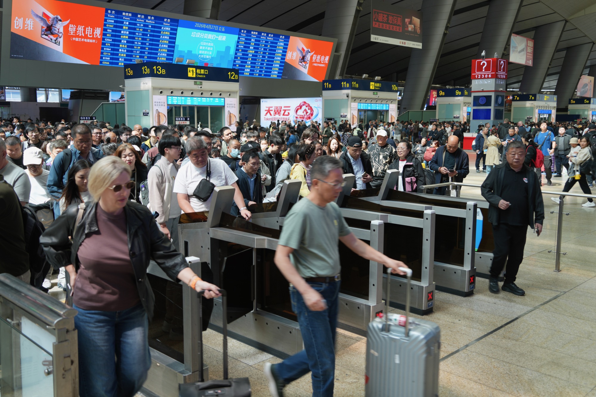 北京南站,2026年铁路“五一”假期运输启动