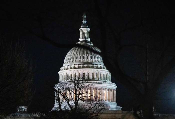 这是2月13日在美国首都华盛顿拍摄的国会大厦。 新华社记者 刘杰 摄