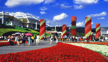欢庆国庆 街头洋溢中国红 花卉装扮春城美