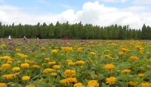 捞鱼河湿地公园:百日菊 大丽花绽放夏日光彩