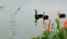 东风坝七孔浮桥 3只黑天鹅光临草海 人与自然和谐氛围