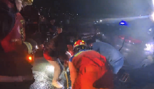 昆磨高速 SUV出事故停路边 乘车人开门取物品又被撞