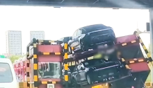 两面寺收费站入口方向 轿运车撞上收费亭 多部门紧急处...
