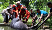 西畴 消防“绳”奇救援 上演“水牛上岸记”