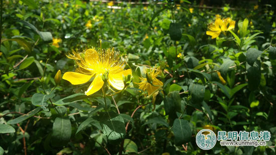 此外,昙华寺公园的金丝桃和金丝梅也开得正艳,蕊肥花瘦的金丝桃,颜色嫩黄、明亮,与淡雅的百子莲形成鲜明对比,给昙华寺公园增加了新的色彩。
