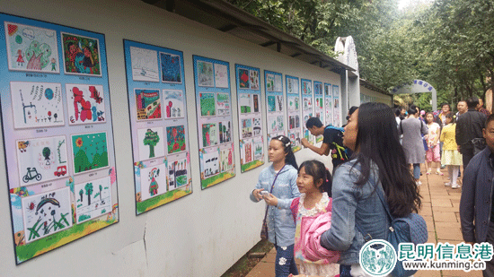 本次儿童绘画大赛以“低碳环保,健康出行”为主题,由昆明动物园与建行城西支行联合举办,共有200多幅作品进行展出,参与创作的“小小画家”们年纪在3—10岁之间,一幅幅充满活力、充满遐想的作品,通过小朋友们的奇妙构思,展现出了他们对大自然的热爱,是孩子们最简单快乐的童真流露。