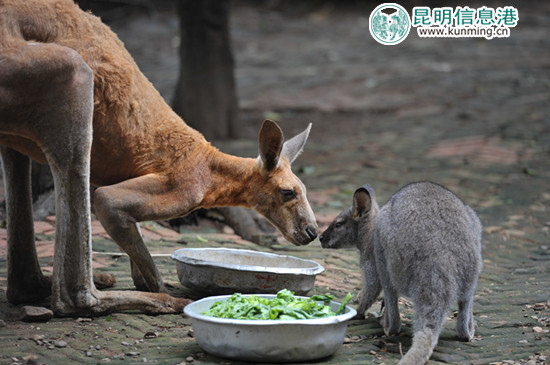 已在动物园安居2年多的大体型赤袋袋鼠迎来新朋友——赤颈袋鼠 昆明日报 记者杨艳辉/摄