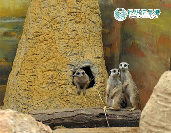 细尾獴俗称猫鼬,体形娇小,身长在30公分左右,体重不超过1.6千克。细尾獴到底有多“萌”?想想《狮子王》里聪明伶俐、身手矫捷的“丁满”就知道了。在昆明动物园的小型动物展区,14只“丁满”上蹿下跳,把机灵的本色显现得淋漓精致。细细观察细尾獴群,它们中总有一只在其他伙伴玩耍或休息时认真地负责站岗放哨,它站立起来,蜷着双手四处张望,深邃的眼睛炯炯有神,呆萌的姿势几乎成了非洲原野的“logo”。