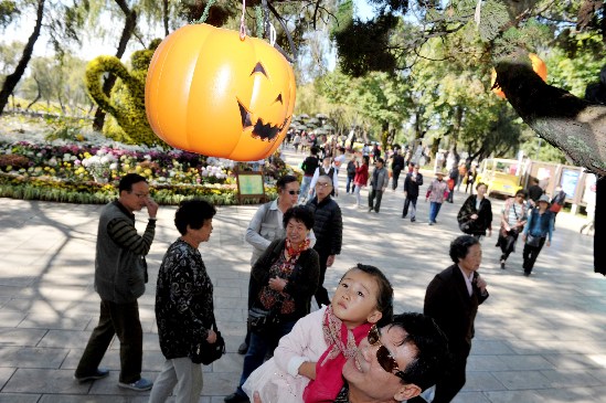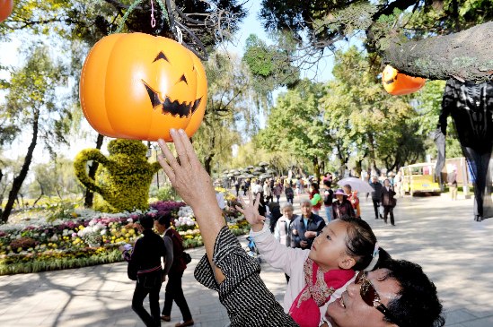 昆明信息港讯 记者杨雁 大观公园的菊花展将在本月底落幕,今天来到公园的游客又发现园内增加了许多新的景观布置。“那不是南瓜灯吗?”一些好奇的游客发现,新增景观都有“万圣元素”。据大观公园的工作人员介绍,10月31日,即本届菊展的最后一天,大观公园将邀请游客前来参加万圣节,届时园内呈现菊花展撞上万圣节的一幕,东西方元素将同时呈现。
