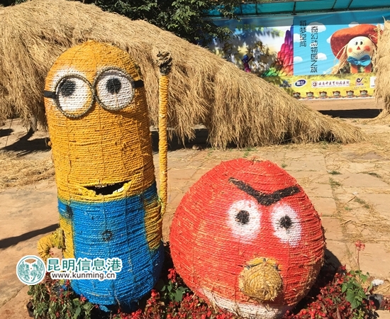 昆明动物园大草坪区的“稻梦空间”稻草人造型自国庆展出以来,各式各样呆萌的稻草人造型深受小朋友们追捧。近日,“稻梦空间”又添新“萌友”,小黄人、愤怒的小鸟等稻草人造型陆续登场,与游客见面。与之前的稻草人造型不同,这次新来的小黄人、愤怒的小鸟等都经过了上色处理,穿上彩色衣服的稻草人造型更加生动可爱,小黄人乌溜溜的大眼睛好似正打量着什么,可爱的造型引得小朋友们争相合影。这些萌萌的稻草人会在园内展出一段时间。