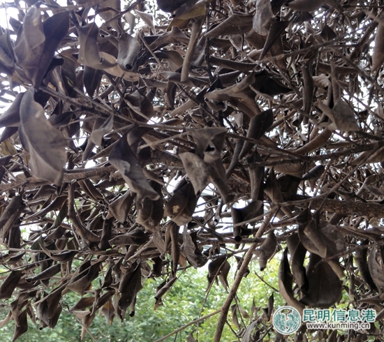 对此,昆明市园林科研所副所长杨志杰认为主要有两个方面的原因。首先,今年1月份的寒潮,使昆明主城区平均最低温降到了零下4.5摄氏度。其次,此次低温持续时长达到近50个小时,对很多植物细胞造成了不同程度的机械损伤。还有就是由于历史遗留的问题,昆明以前种植的一批热带、亚热带树种在这次低温寒潮中未能经受住考验,受损严重。