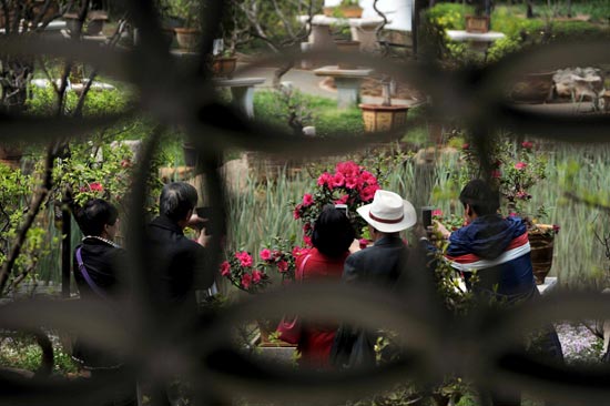 游客争相拍摄杜鹃盆景。昆明日报 记者杨艳辉/摄