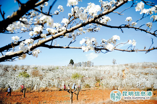 赏花、看云、吃酒、作诗,安逸地晒太阳。风过,一树树梨花被吹落,花雨撒到地头,白色的花瓣在红土地上分外显眼。
