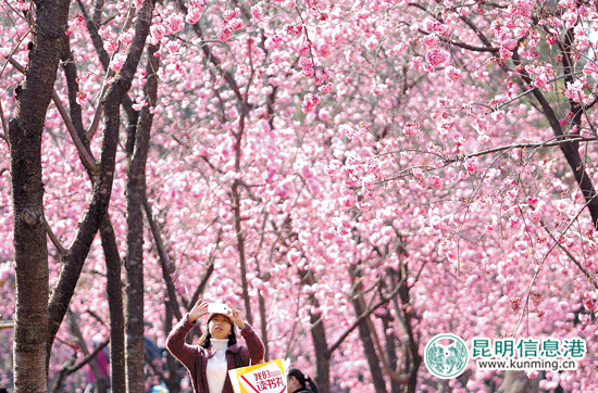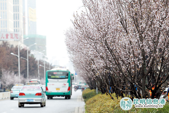 昆明人赏花的乐趣不仅是在周末,在公园或者郊外,哪怕在上班日里,昆明人也能在大街小巷发现“花街”:民航路两边的樱花开了,变成一条粉色的街;青云街紫白相间的棠梨花;安康路的刺桐开了大朵红花,哪怕一条寻常小巷里也点缀着成片的叶子花、迎春花、玉兰花。(昆明日报 记者李双双)