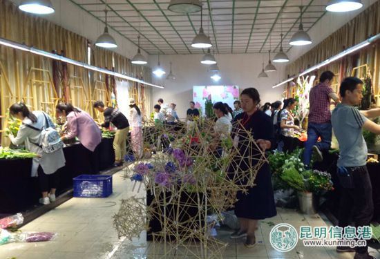 下午,插花个人赛在金殿名胜区室内紧锣密鼓地进行,参赛选手们使出浑身解数进行花艺创作,力求向评委和游客展示出华丽、独特的作品。本次比赛的插花作品将从7月16日展出至7月19日。