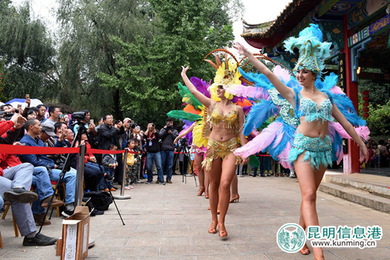 市民和游客围观枫叶节开幕式表演。昆明日报 记者杨艳辉/摄