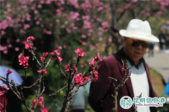昆明信息港讯 记者杨雁 “去年今日此门中,人面桃花相映红。人面不知何处去,桃花依旧笑春风。”又到了一年一度桃花盛开的时节,昆明市民仿佛在每一季都知道哪里花正盛、景最美。3月4日,第十七届春城桃花文化节在郊野公园启幕,5000余游客入园赏春日暖阳下的桃花美景。
