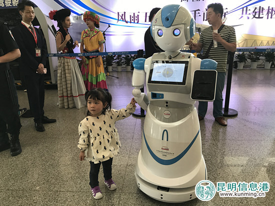 会移动、能唱歌、会说话,帮您解决乘机相关问题的智能客服机器人首次亮像长水机场,为旅客提供“值机”、“安检”、“登机”等引导服务。记者上官艳君/摄