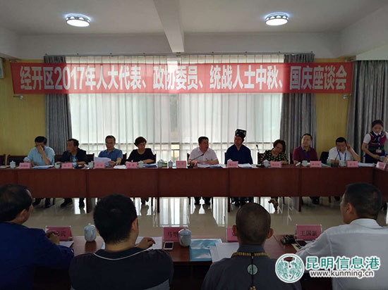 昆明信息港讯 记者徐毅杰 9月20日下午,昆明经开区召开区人大代表、政协委员、统战人士中秋、国庆座谈会。经开区管委会办公室、工委工作部、法制局、工商联、经发局、投促一局、投促二局、社会事业局、城乡工作局、拆迁安置局、阿拉街道、洛羊街道人大代表、政协委员等、统战人士共计40余人首先来到寰基生物和巨力集团天地汇,参观了企业建设和成果展示,并听取企业发展计划。
