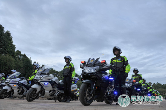 21日中午12时40分,随着“春城骑警”警务实战技能比武活动接近尾声,昆明市公安局110指挥中心发出指令:五华、盘龙、官渡、西山、呈贡分局和交警、巡警、特警支队“春城骑警”各骑巡警务作战单元240辆摩托车240名骑警队员,以不同行进路线,从主城区四个方向分别向滇池警务营区迅速集结,进行拉动演练,全市春城骑警各骑巡小组按照规定的时间、地点准时到达滇池警务营区,此时,“春城骑警”警务实战技能大比武工作,经过两天的激烈角逐圆满结束。