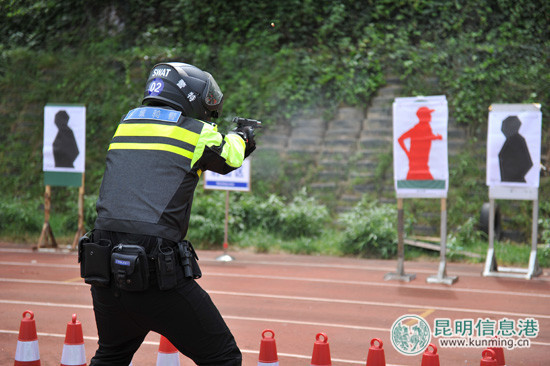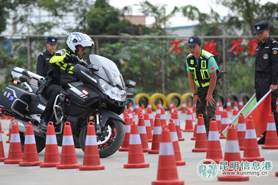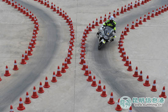20日上午7时30分,昆明市公安局副局长杨建军一声令下,来自五华、盘龙、官渡、西山、呈贡分局和交警、巡警、特警支队的共90名参赛骑警队员在呈贡区警用摩托车外训基地准时集结,开始城市道路障碍骑行和92式手枪实战应用射击两个科目的比武。在为期一天半的比武中,所有骑警队员围绕独木桥、紧急避让、60m加速紧急制动、模拟城市道路综合场地、3m限宽直线桩、0.9m直线道、50米追击手枪速射等科目展开激励角逐。