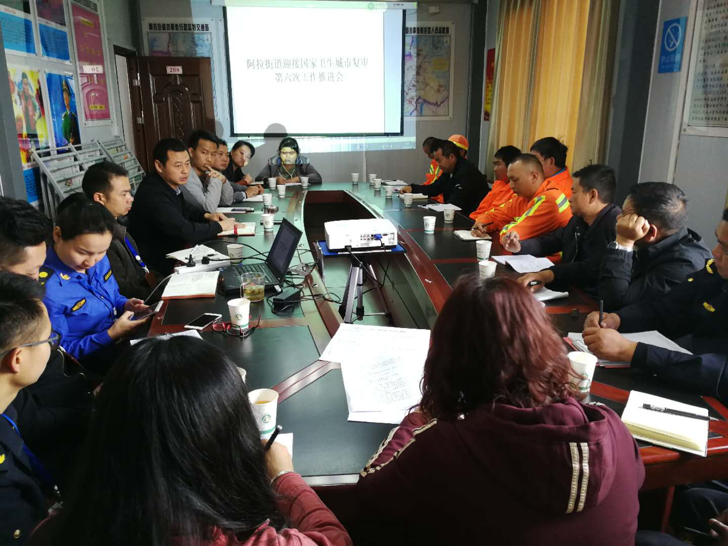 4月17日上午,阿拉街道召开迎接国家卫生城市复审第六次工作推进会。会议由街道办事处副主任刘海军主持,综合行政执法大队部门负责人、各社区环卫专干、洁城清洁有限公司主要领导参加会议。