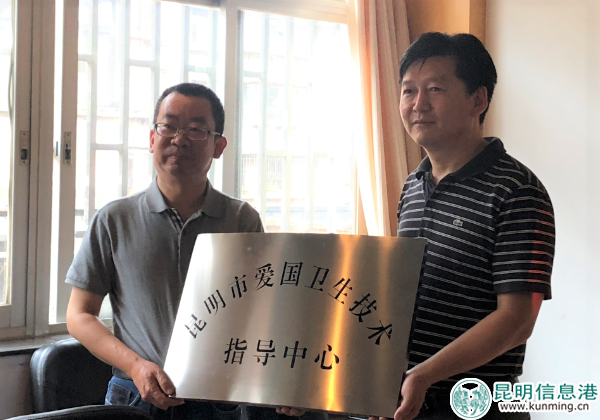 昆明市卫生计生委副主任、市爱卫办常务副主任张必明向市爱国卫生技术指导中心授牌