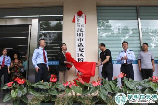 中共盘龙区委副书记、区长梁崑,昆明市税务局联合党委成员、副局长杨春龙和盘龙区税务局联合党委书记、局长杨立学,区局联合党委副书记、副局长陈鹏共同为新成立的国家税务总局昆明市盘龙区税务局揭牌。