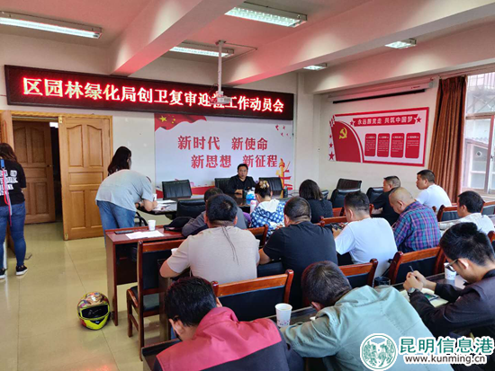 昆明信息港讯 为顺利通过2018年昆明市国家卫生城市复审,盘龙区区园林绿化局于2018年8月29日上午召开迎检工作动员会,精细安排,鼓舞士气,备战迎检。