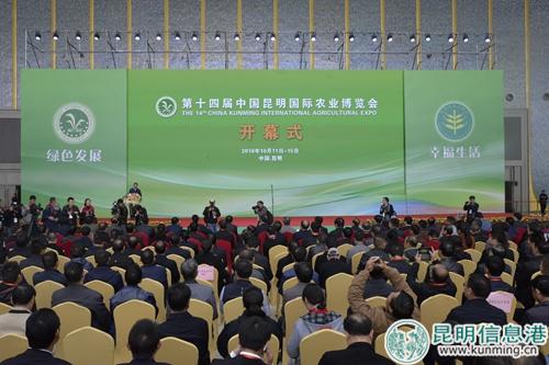 昆明信息港讯 实习记者俞逍 10月11日,第十四届中国昆明国际农业博览会(以下简称“农博会”)在昆明滇池国际会展中心开幕,本届农博会持续至15日,主会场设置8个展馆,3200多个展位,展览面积8万平方米,参展企业2800余家,共计19个国家以及台湾、香港地区与国内16个省市参展。