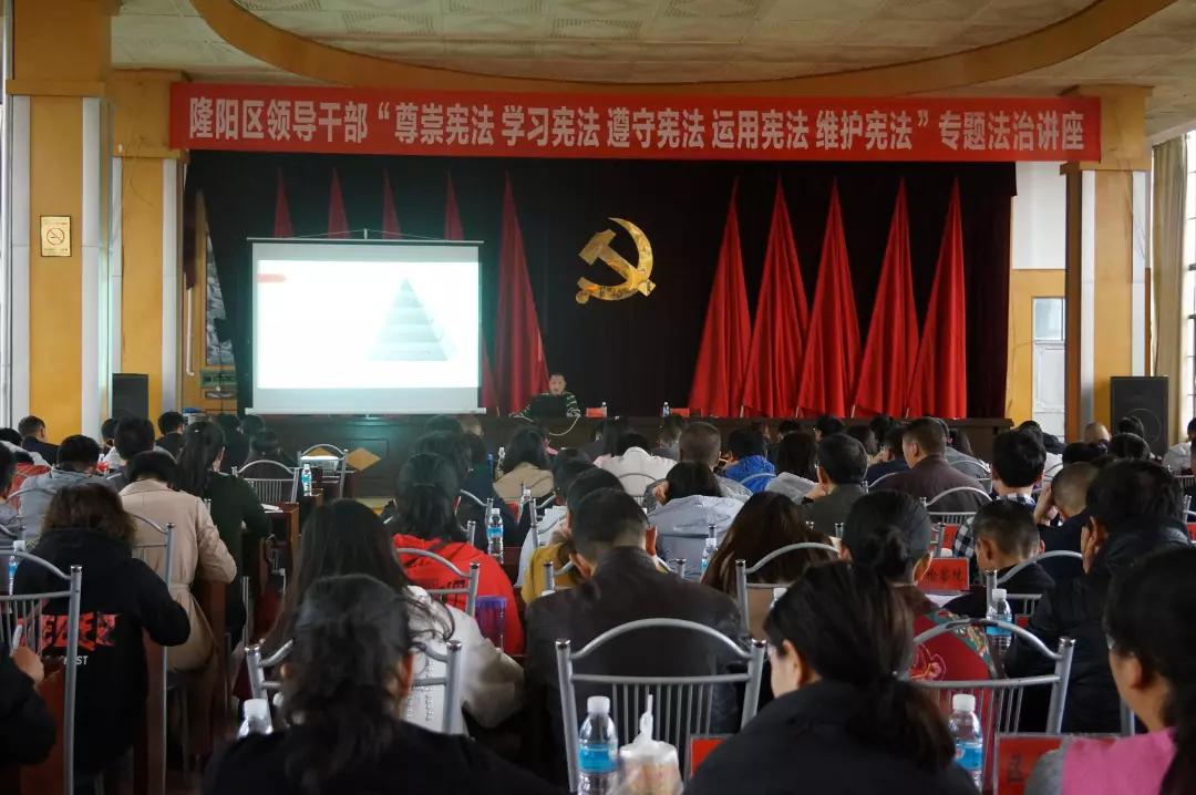 今年3月以来,保山市隆阳区立足政治高站位,各责任单位积极作为、系统谋划,多措并举,广泛开展宪法学习宣传教育活动。为进一步增强全区领导干部的宪法和法律素养,近日,中共隆阳区委依法治区领导小组办公室、区委普法办、区司法局联合举办“尊崇宪法、学习宪法、遵守宪法、运用宪法、维护宪法”专题讲座。讲座由隆阳区人民法院院长杨正主讲,区委依法治区办专职副主任霍俊燕主持讲座,区直部门分管领导以及乡镇(街道)分管领导、宣传委员、普法办主任、综治办主任共150余人参加讲座。