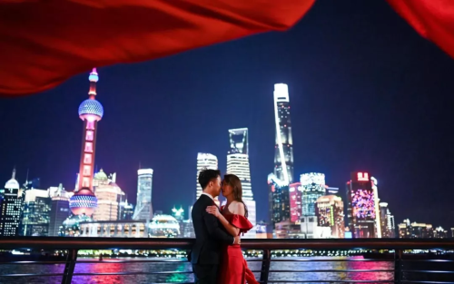 道路整洁有序街头鲜花盛放美丽的上海敞开怀抱