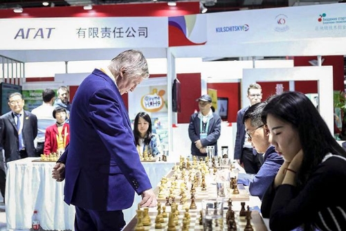 【进博视图】国际象棋特级大师卡尔波夫1对8轮战中国选手