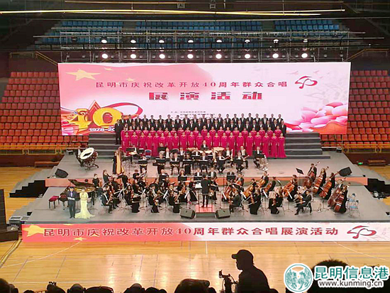 昆明信息港讯 11月21日,昆明经开区社会事业局组织区文化馆馆办合唱团参加在市体育馆举行的“昆明市庆祝改革开放40周年群众合唱展演”活动,与其他13个社会团体、1300余名合唱演员共同歌颂改革开放取得的丰硕成果。