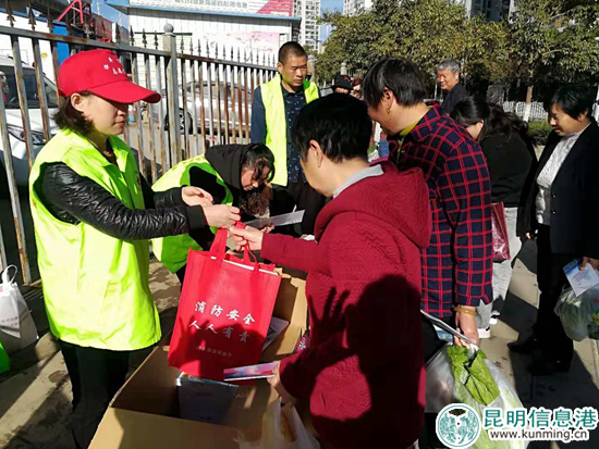 昆明信息港讯 通讯员李红仙 11月26日上午,昆明经开区洛羊街道大冲社区消防安全员组织社区工作人员,在大冲农贸市场开展消防安全知识宣传活动。