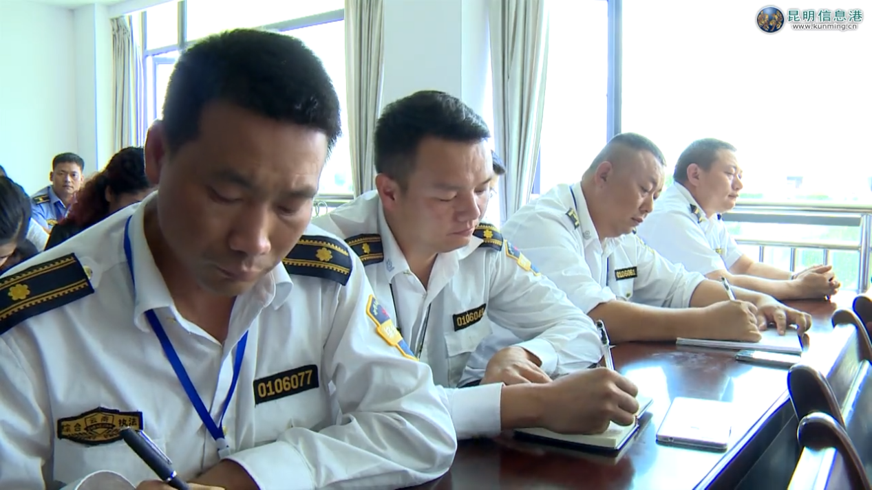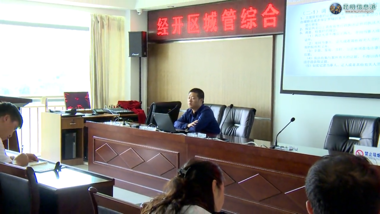一大队副大队长王兴红:“主要是结合住建部云南省人大常委会,还有省政府法制办颁布的三个呃结合我们城市管理的一些法律法规,约请了我们的法律顾问来进行一个专项的那个法律培训,目的是在于提升我们工作人员的法律素质和业务能力。然后在这个讲座的过程当中,律师也会针对我们工作人员在执法过程当中,在理智法律文书过程当中发生的一些瑕疵,或者说程序有一些不当的地方进行一个评说。”