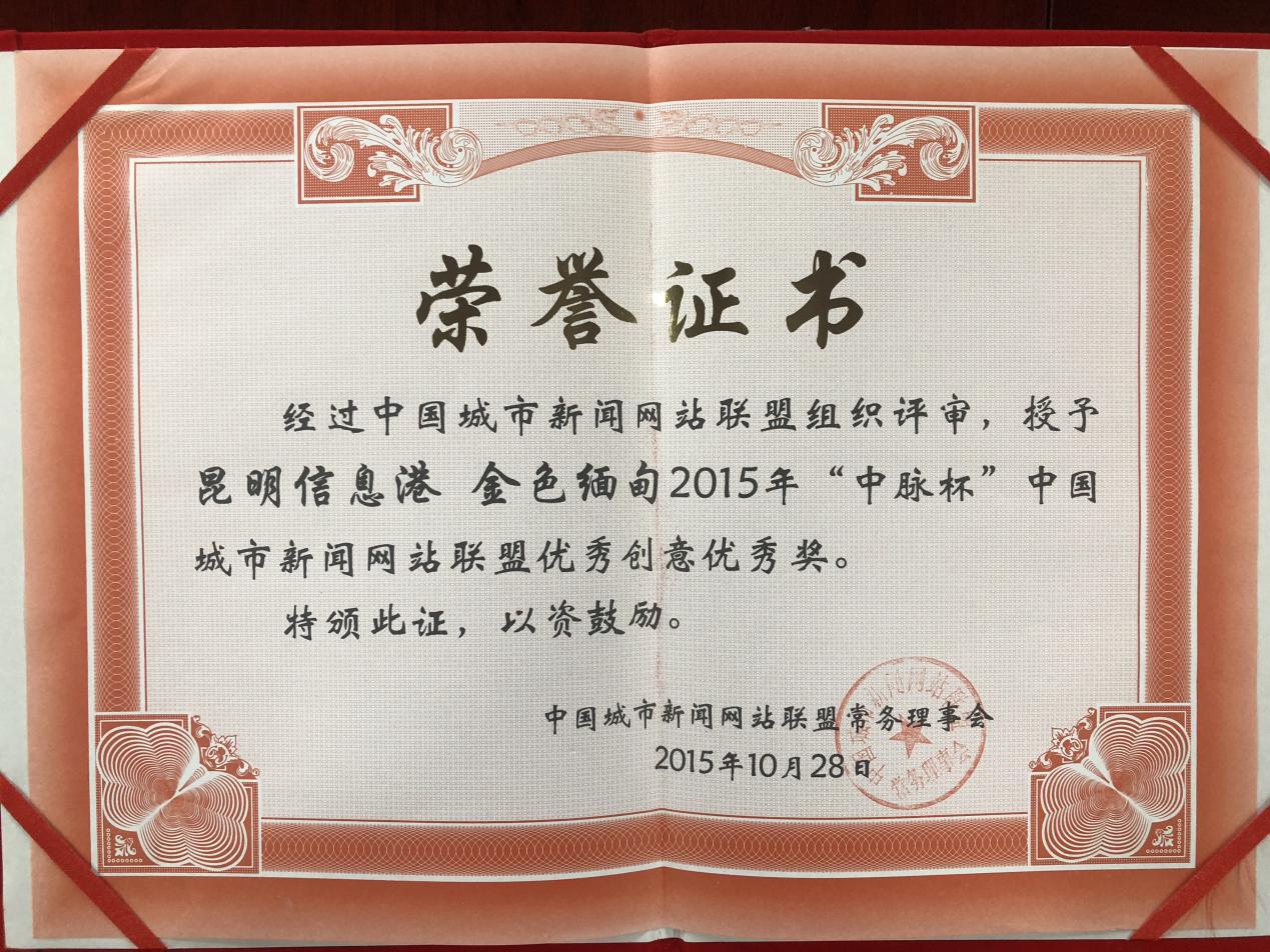 2.2015年,第十二届中国城市新闻网站联盟年会,昆明信息港获“优秀网站奖”;“发现昆明之美”栏目获“品牌栏目精品奖”、“春城微视”手机应用获“移动创新精品奖”、“金色缅甸”中缅双语平台获“优秀创意优秀奖”。