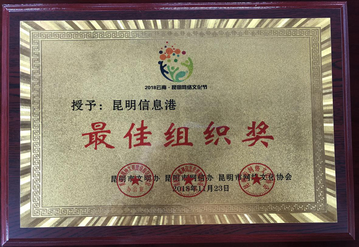 4.2018年11月23日,由昆明市文联、昆明市网信办、昆明市网络文化协会联合举办的2018云南•昆明网络文化节,昆明信息港荣获“最佳组织奖”。